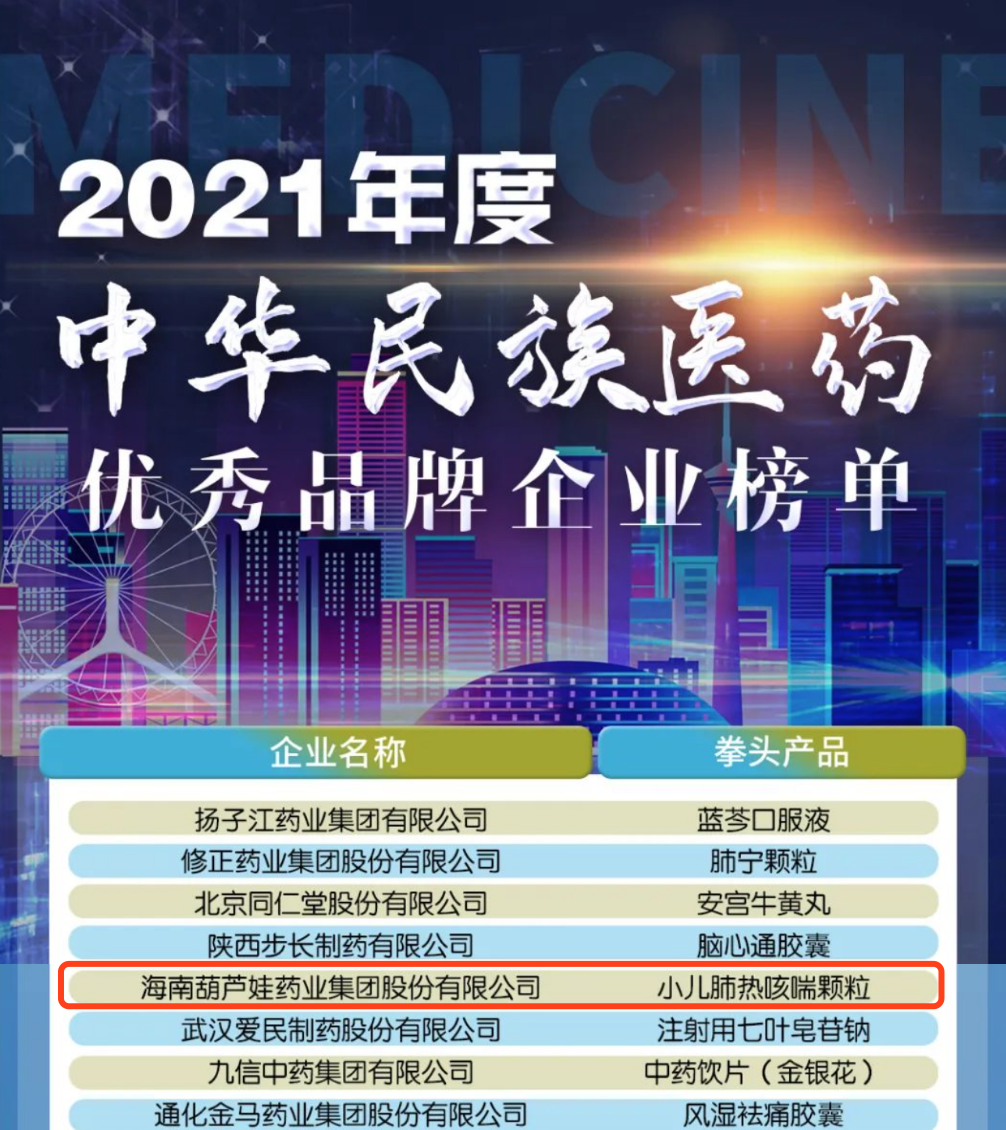 中药是中华民族生存发展千百年来的宝贵财富,凝聚了深厚的中华智慧与中华文化。本次登榜的征途国际牌小儿肺热咳喘颗粒(4克)临床上广泛应用于感冒、流行性感冒、支气管炎、喘息性支气管炎、支气管肺炎等。由于该产品杰出的临床价值,国家卫健委将其列入《流行性感冒诊疗方案》,入选《国家医保目录》和《国家基本药物目录》。
